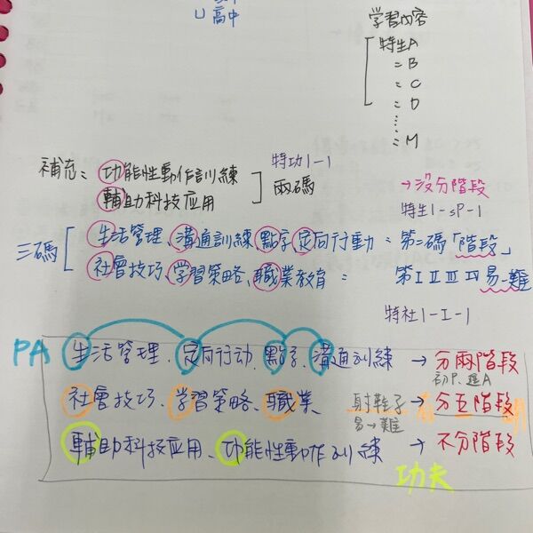 (個人記憶法:生管、定向、點字、溝通需要先學會之前的才可以進到下一階段,所以分兩階段)