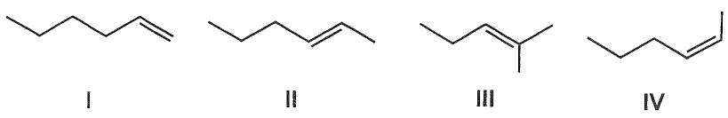 6. Select the right stability order for the following four Hexenes. Arrange the more stable alkene first.