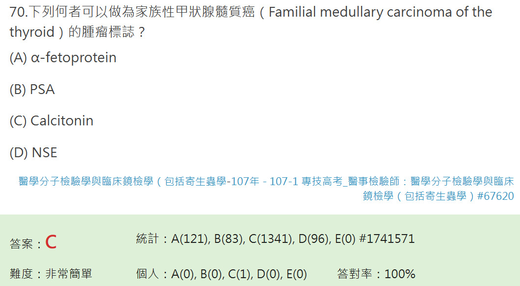 60.下列何種賀爾蒙可做為甲狀腺髓質(medullary thyroid)的腫瘤標誌?