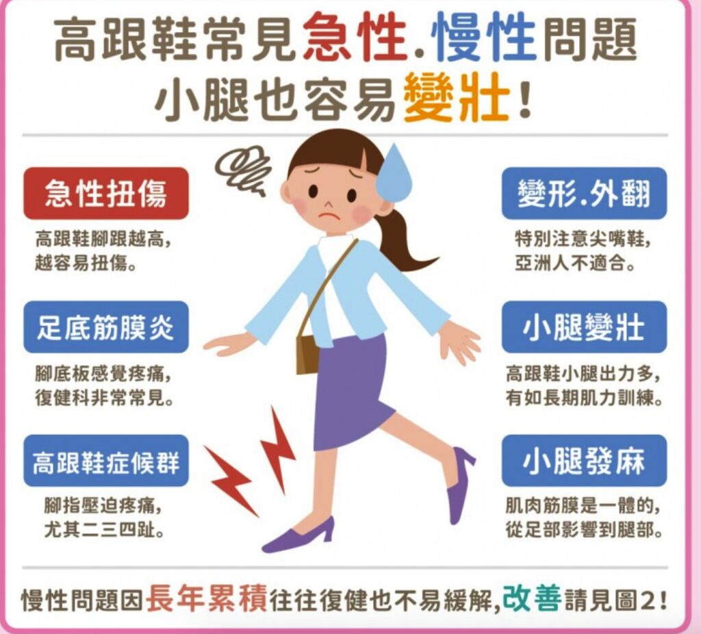 60.和赤腳相比,穿著尖頭高跟鞋造成的影響,下列何者錯誤?