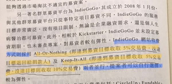 (B) Keep-It-All 係指達募資目標,募資平台會收取某比例交易費;但若沒達目標,則收取另一比例交易費