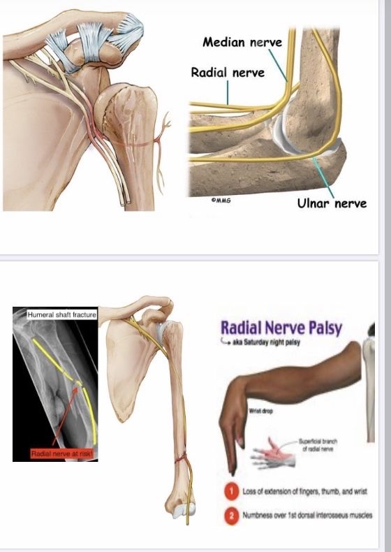 橈神經位於手臂上方,支配手腕及手指動作。典型症狀即是手腕下垂無法抬起、手指頭也沒辦法伸直。