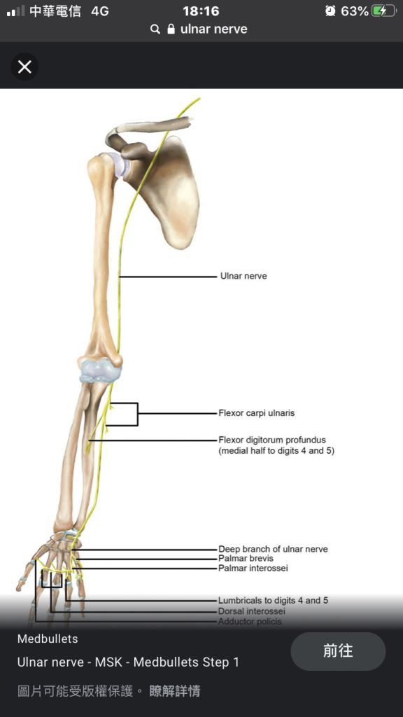 尺神經控制手掌肌肉的張合、小指與無名指的彎曲、小指與手掌