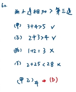 兩邊總合大於第三邊,兩邊差小於第三邊甲:...