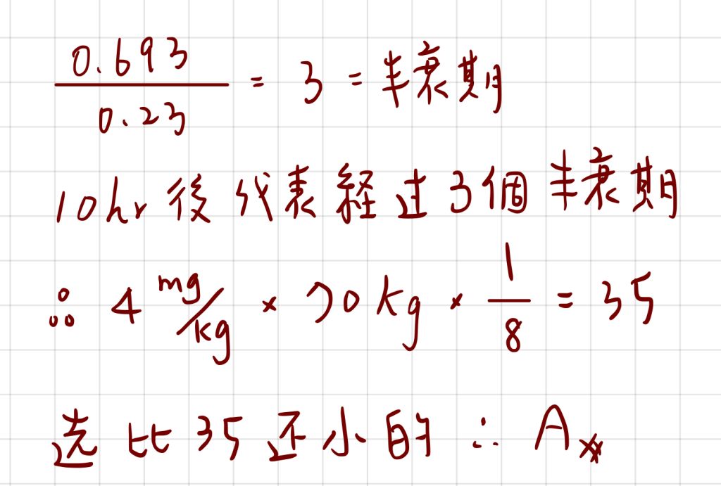 61.李先生體重70 kg,以靜脈注射單劑量4 mg/kg之藥物,其血中濃度經時變化依