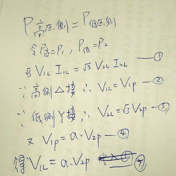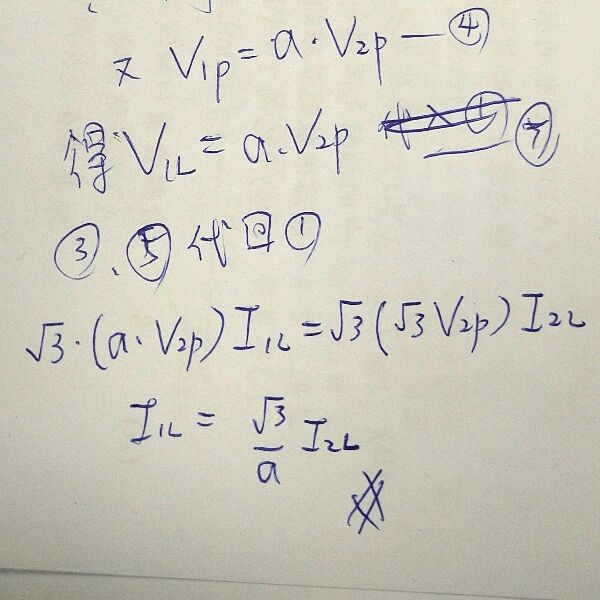 1.因為要求線電流,所以功率以√3x線電壓x線電流表示。2.題目給兩側相電壓關係(比值),所以將兩側電壓都改以相電壓表示。