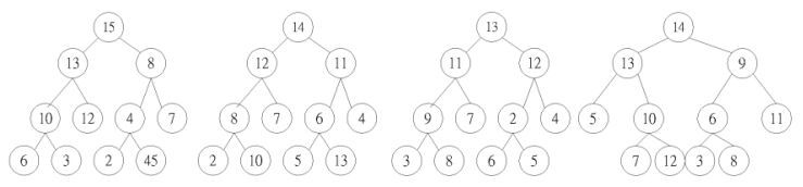 61. 下列四棵二元樹(Binary Tree),滿足最大堆積(Max-heap)特性之二元樹共有幾棵?