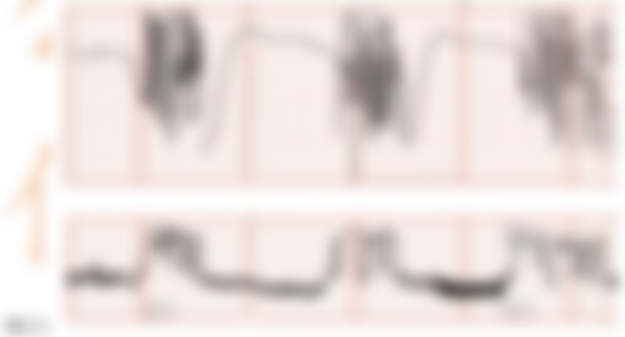 61. 懷孕 39 週第一胎孕婦,因早期破水而入院待產,剛入院時子宮頸未開,宮縮不規則,醫囑給予 oxytocin,待產三小時後,fetal monitor 顯示有tachycardia 及 loss of variability,如圖(五),下列初步處置,何者最不適當?