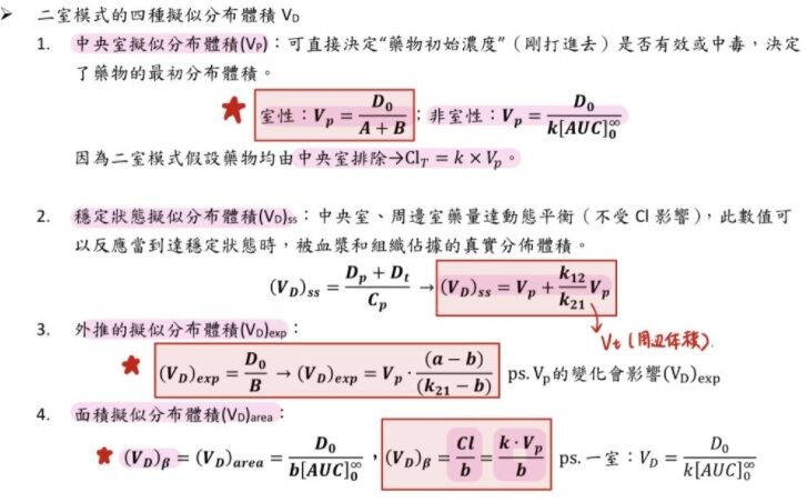 62.某藥具二室分布特性,估算其在體內的四種擬似分布體積(