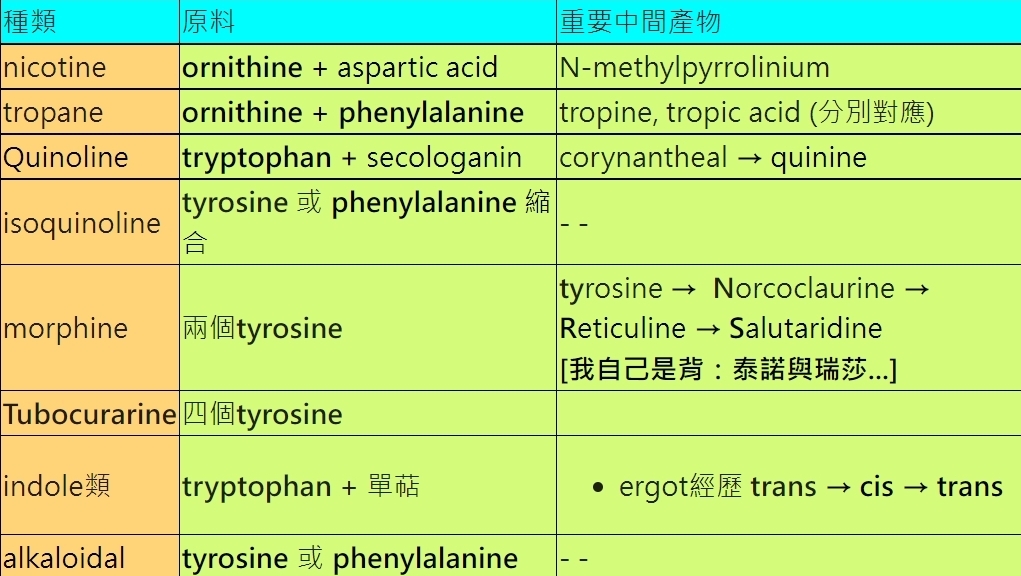 63.下列何種胺基酸為骨骼肌鬆弛劑d-tubocurarine的生合成前驅物(precursor)?