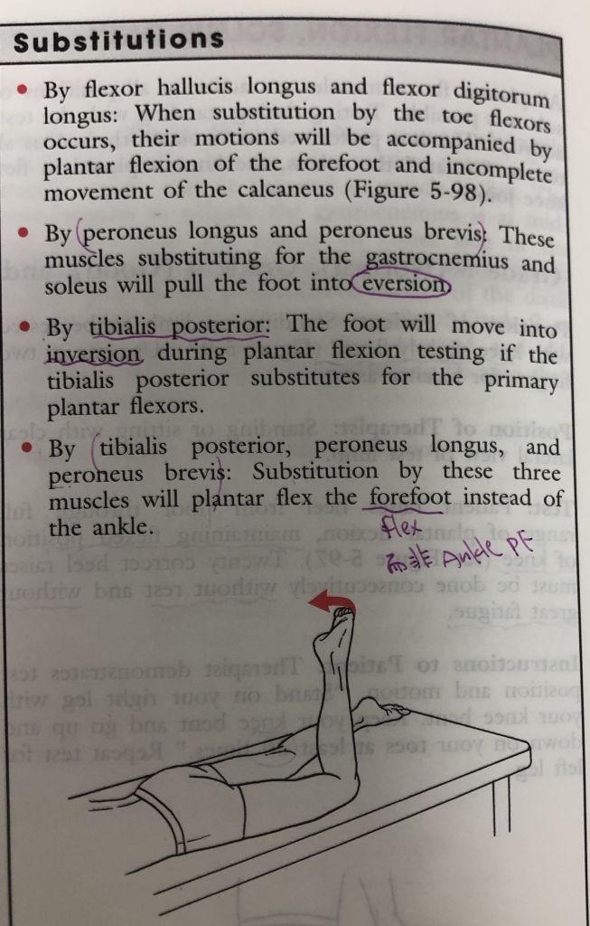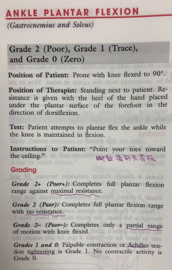 #如果要獨測比目魚肌,受測腳要做微膝屈(slight knee flex)(第10版內容有提及)