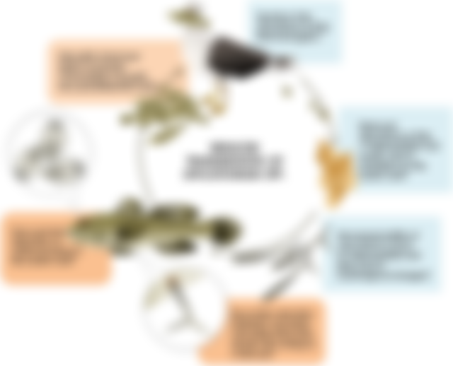 63.鱒魚群出現不安,體色變黑,單側或雙側性的眼球白濁或壞死(如下圖),剖檢內贜無明顯病