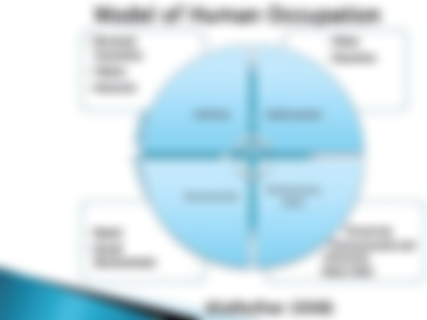 64.在促進個案身體活動參與時,特別注重個案是否有達到自己訂下的目標,是應用人類職能模式(Model of