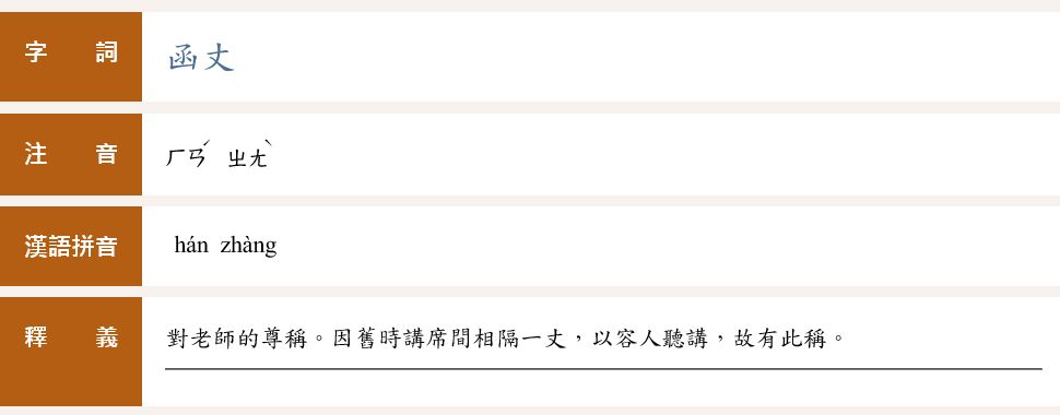 (B)學生給自己的老師:「明明吾師函丈」