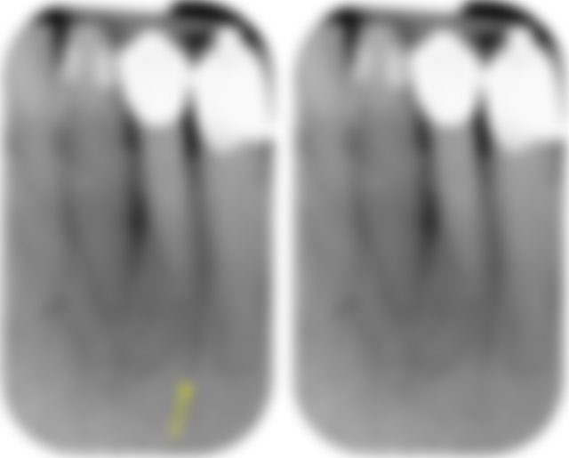 營養管(nutrient canals)最常見於下頷骨前側,呈垂直或水平的radiolucent line。