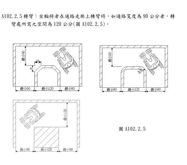 無障礙設計規範A102.2.5 轉彎:坐...