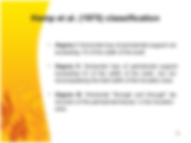 66.Hamp等人(1975)的根叉侵犯分類所測量的是何項根叉缺損?