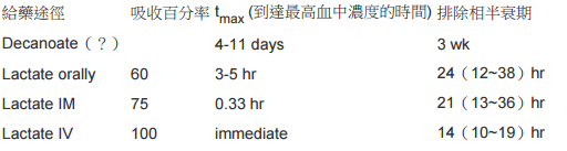 haloperidol lactate 不同劑型有不同排除半衰期