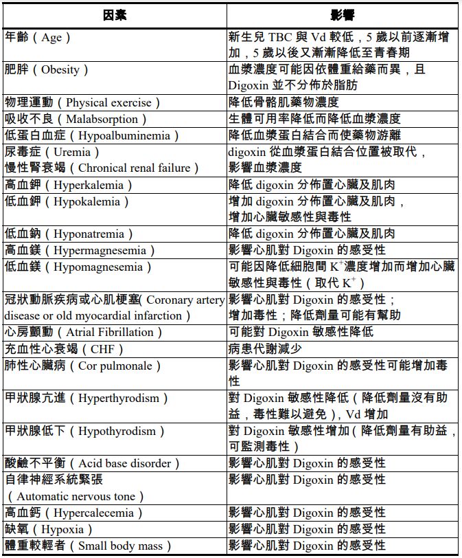 補充會影響Digoxin血中濃度的因素