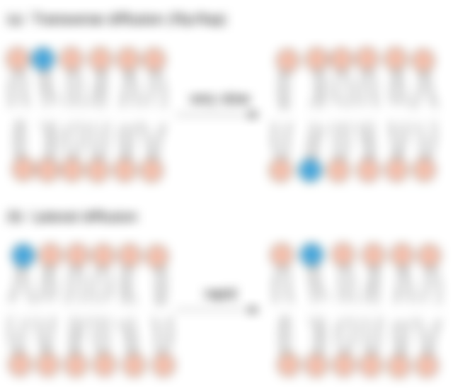 (C)膜蛋白無法在脂雙層(lipid bilayer)翻面擴散(flip-flop diffusion) :只有磷脂質分子會flip-flop diffusion