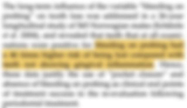 (B)長期臨床追蹤顯示,治療後牙周囊袋超過 4 mm 的牙齒,脫落的風險是小於 4 mm 的 46 倍