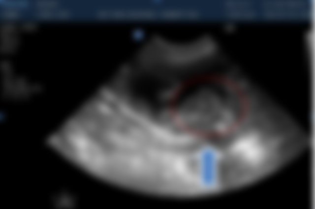 68.附圖為膀胱都卜勒超音波掃描,箭號所指最可能為何?