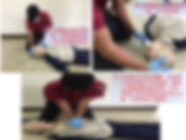 4. 小美一個人下班時發現操場上有一位路倒的5歲孩童,請問下列何者錯誤? (A)先確認小孩無意識、呼吸、心跳 (B)先打119後再進行CPR (C)胸部按壓位置在兩乳頭連線中點,深度至少胸廓1/3勿超過6公分,100-120次/分 (D)AED優先使用兒童貼片,沒有再用成人的