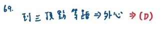 69. 露營區中的三個營隊分別駐紮在不共線的 A、B、C 三處,想要在離各營隊駐紮處相同距離之處辦理營火晚會。在理