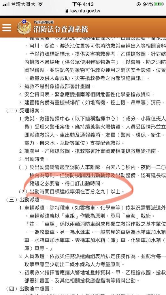 (B)消防機關因出勤動線及出勤整備,認有延長或縮短之必要者,得自訂出動時間