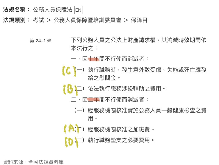 7 公務人員保障法第 24 條之 1 關於公務人員公法上財產權請求權時效之規定,下列敘述何者錯誤?