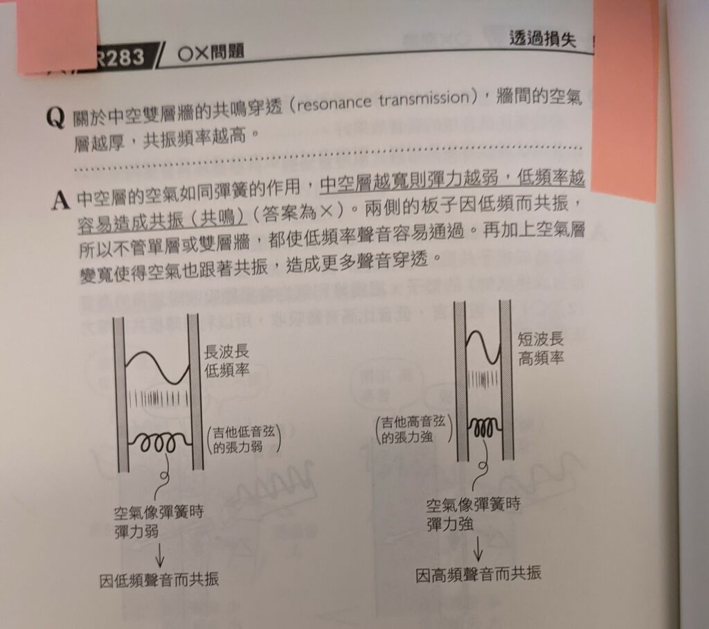 7 採用沖孔板搭配後側空氣層,以赫姆霍茲(Helmholtz)共振原理作為吸音構造時,下列敘述何者