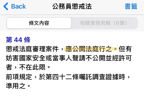 (B)公務員懲戒法第 44 條第1項規定,懲戒法庭審理案件,應公開法庭行之。但有妨害國家安全或當事人聲請不公開並經許可者,不在此限。