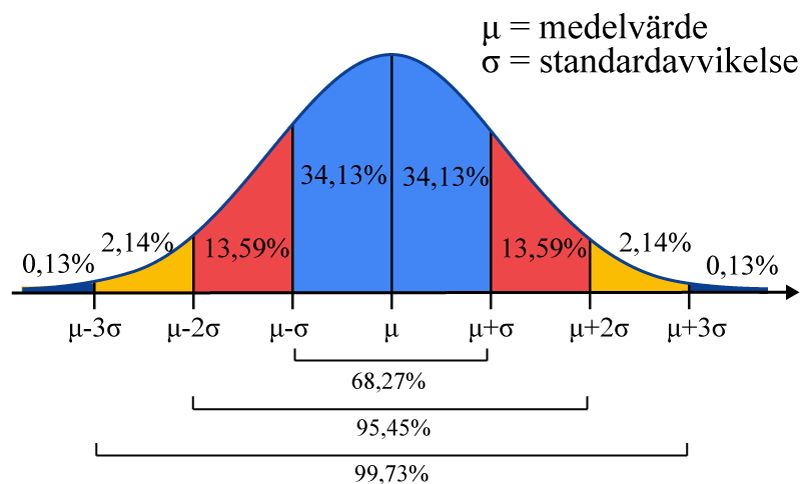 (A)約 68%之測定值落在平均值 ± σ 之範圍內