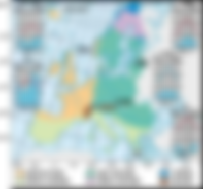 7. 下圖是1848年至1849年歐洲一系列武裝革命運動的分布情形,這波革命運動雖然都以失敗告終,但對歐洲的影響卻極為深遠。請問歐洲的氣候大致可區分為溫帶海洋性、溫帶地中海型、溫帶大陸性、高地、副極地大陸性、苔原等6個氣候區。1848年至1849年發生的系列武裝革命運動,主要集中於哪兩個氣候區?
