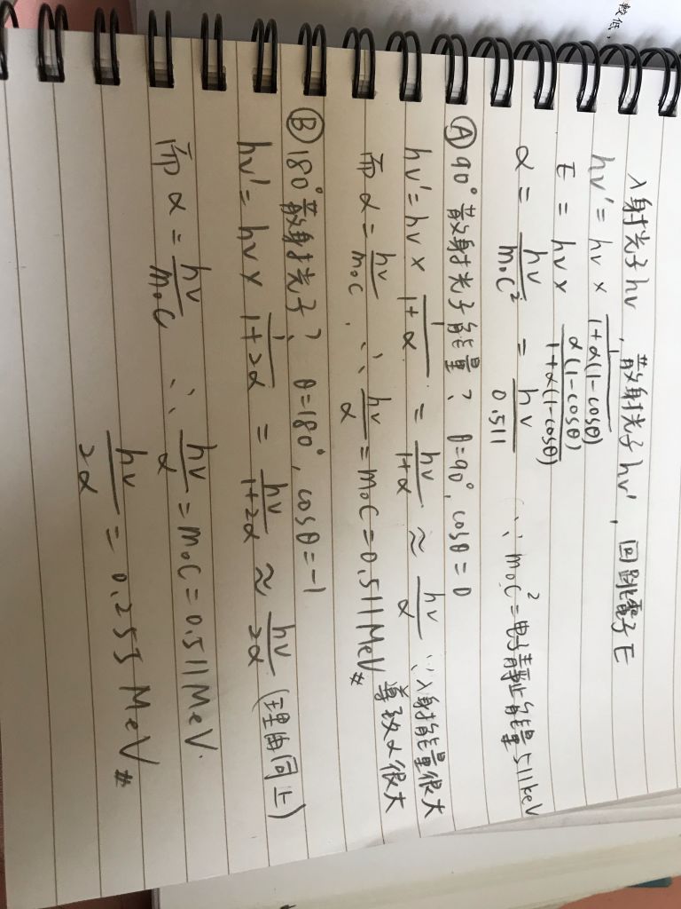 7.康普吞效應中,若入射的光子能量非常高時,則下列何者之能量為511 keV?