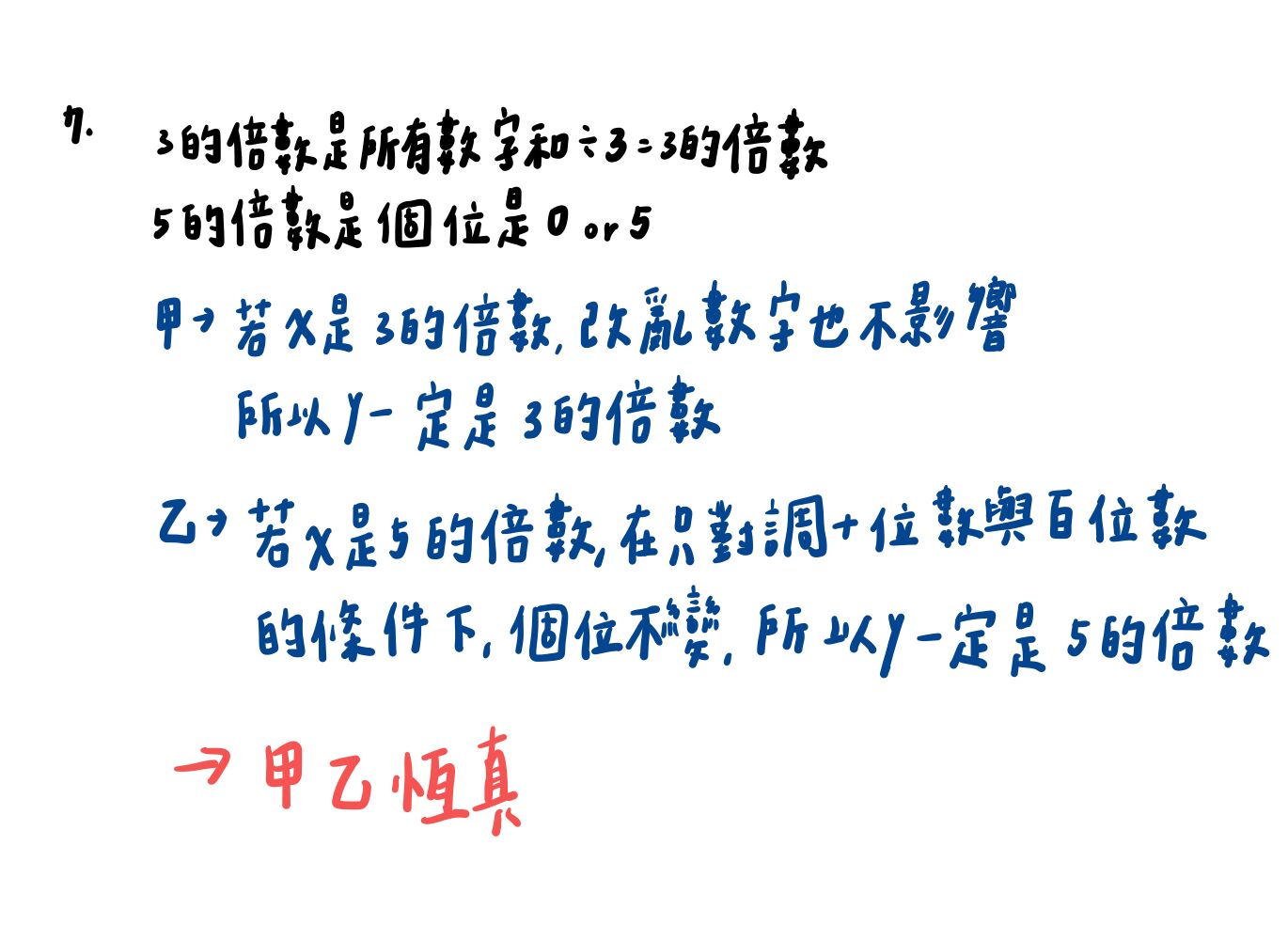甲、若 x 是 3 的倍數,則 y 一定是 3 的倍數