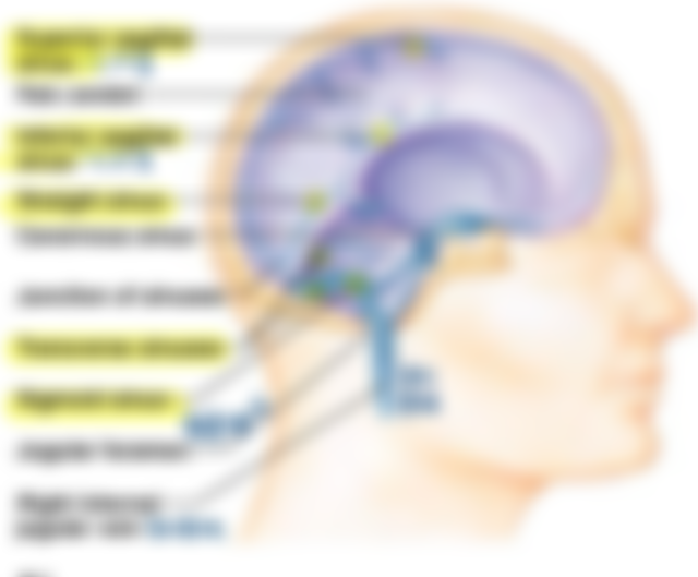 (B)位於顳骨(temporal bone)和枕骨(occipital bone)之間