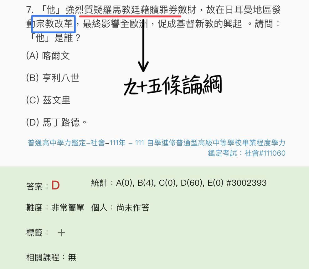 7. 「他」強烈質疑羅馬教廷藉贖罪券斂財,故在日耳曼地區發動宗教改革,最終影響全歐洲,促成基督新教的興起