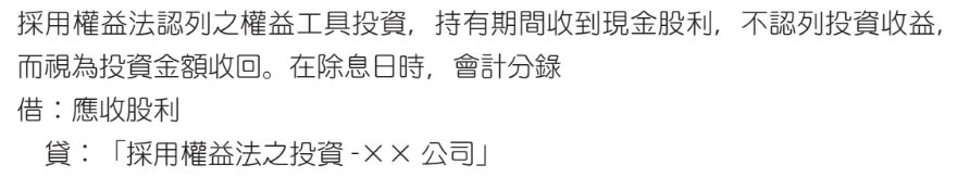 7. 採用權益法認列之權益工具投資,收到現金股利應貸記投資收益。