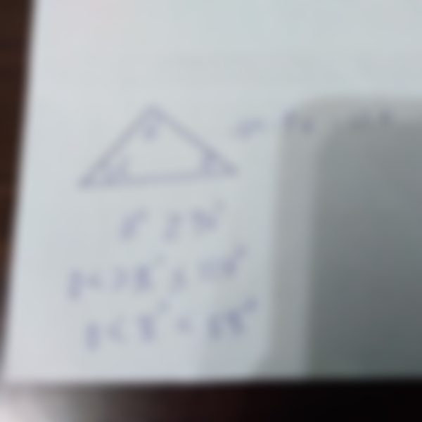 7. 若一等腰三角形的頂角不小於 70 度,設底角為 x 度,則 x 的範圍為何?