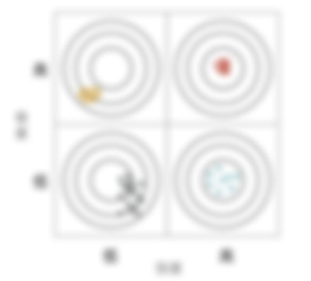 7. 關於信度、效度的關係圖,下列說明何者有誤?