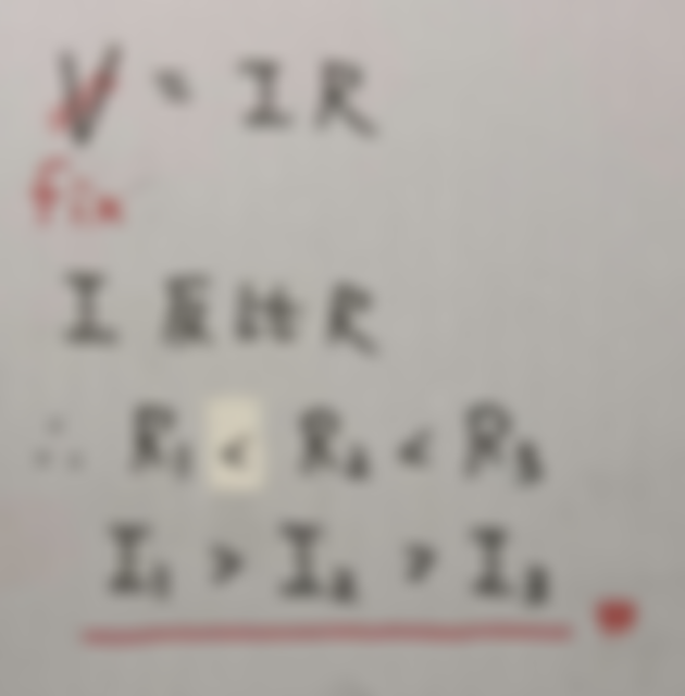 7. 3 個電阻 R1、R2及 R3並聯後,再由一直流電壓源 V 供電,若已知電阻值 R1 < R2 < R3,且流經 R1、R2及 R3