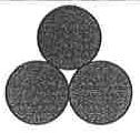 7. Connect three disks as shown in the following figure. Their centers form a regular triangle. Each disk of mass M, radius R has an inertial moment I = MR²/2 when rotating about the disk center. Calculate the total inertial moment of the three disks when rotating about the center of triangle (in unit of MR²).