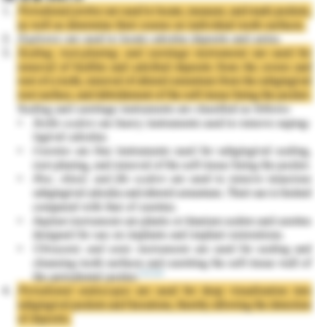 (D)牙周刮刀(curettes)主要用於牙齦下刮除牙結石、牙根表面整平和去除囊袋內軟組織