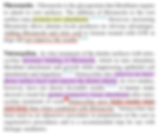 70.藉生物性的改變牙根表面(biomodification of root surface)以促進產生新附連(new