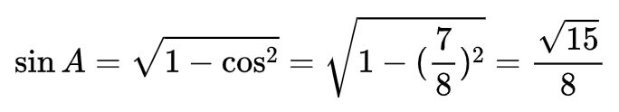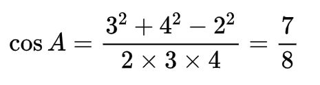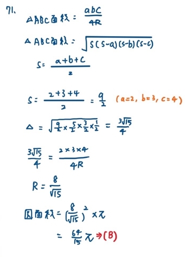 71. 已知某三角形其三邊長分別為 2、3、4,則此三角形外接圓面積為?