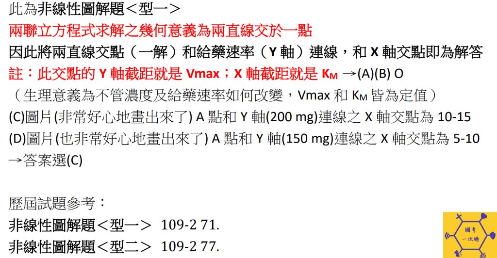 非線性作圖法,目的是用直線去求出非線性的Vmax (交點A)