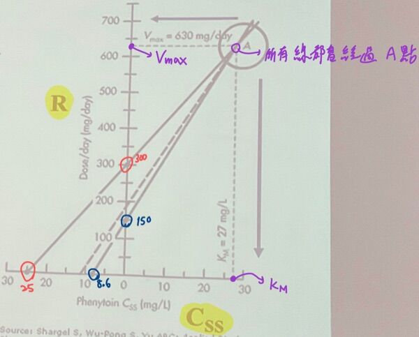 71.Phenytoin在不同給藥速率下與穩定血中濃度作圖如下,針對此圖,下列敘述何者錯誤?