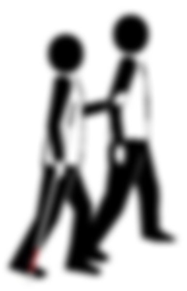(B)使用他人引導法(human guide technique)時,視障孩童抓住引導者的手肘
