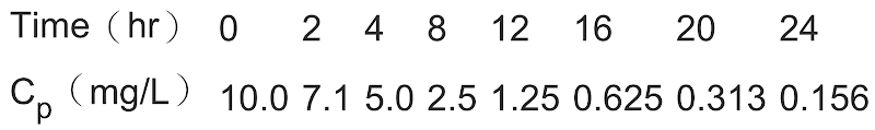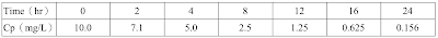 (Cp)經時關係如下表所示。若處方為每8 hr靜脈快速注射給予此藥200 mg,請問在第四次